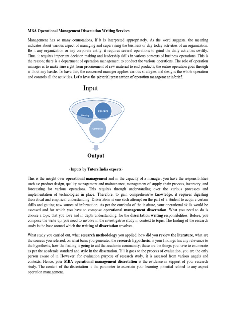 Facebook Twitter Reddit Pinterest WhatsApp Email LinkedIn StumbleUpon. List of Operations management dissertation topics The list is accumulated after thorough research to assist you with the best dissertation topics in operations management. A comparative analysis of operations management for products and services.